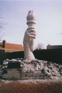 le monument symbolise la résurrection de Neuville Saint Vaast après la grande guerre de 1914 à 1918. M.Yrondy en a été l’architecte et M.Rafour le sculpteur.